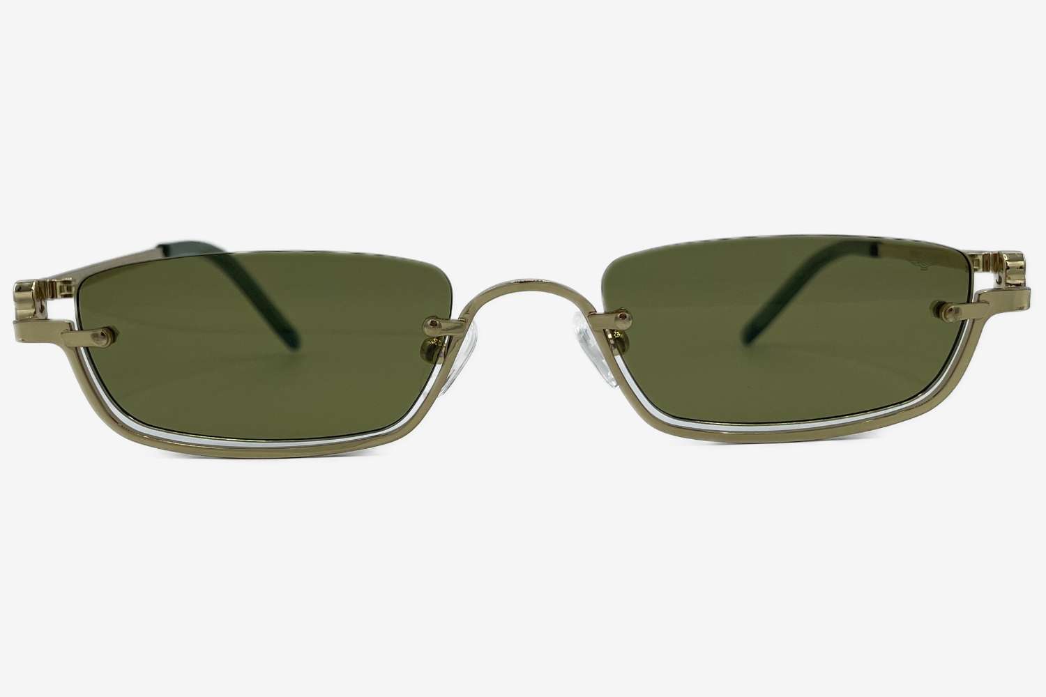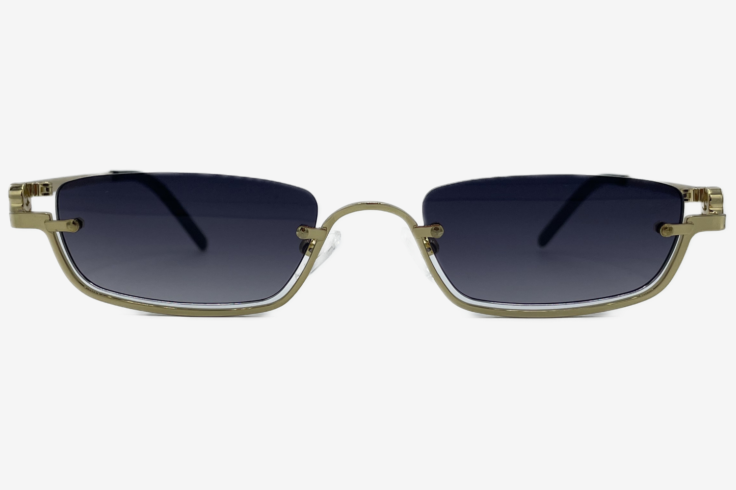 Altın rengi çerçeve, klasik lüksün modern yorumu olarak gözlüğe sofistike bir ışıltı kazandırır.